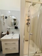 A kertre néző kényelmes, csöndes szoba. Plazma TV, ingyenes wifi, ruhás szekrény, íróasztal, tusoló, törölközők, vízforraló.
